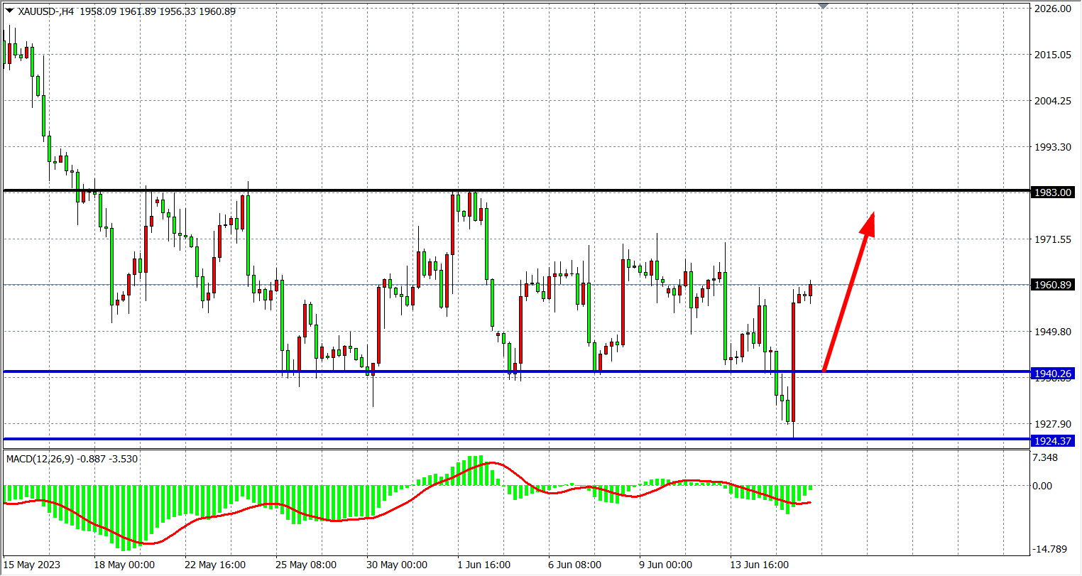 4小时图看,黄金跌至1925美元附近开启快速反弹,MACD量能在零轴之下萎缩,短线行情已转多头,当前支撑关注1940-1950,上方压力1983附近。