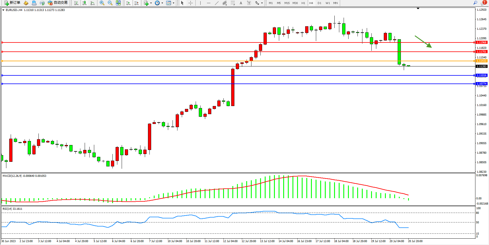 欧元兑美元维持1.11283附近震荡,经济情绪和通货膨胀可能会影响欧洲央行未来的利率决定。市场预计下周会议将上调关键利率,但9月的决定将取决于7月和8月的通胀率,以及欧元区的情绪指标。