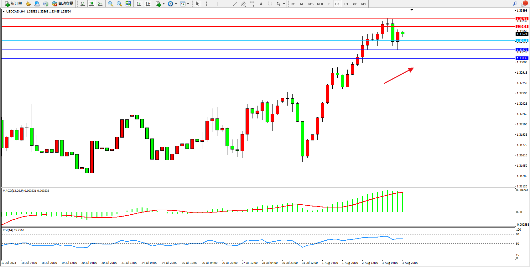 交易策略:1.33413上方看涨,目标1.33636  1.33758
