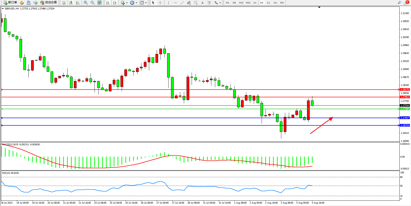 英镑美元GBPUSD ——4小时K线图显示: