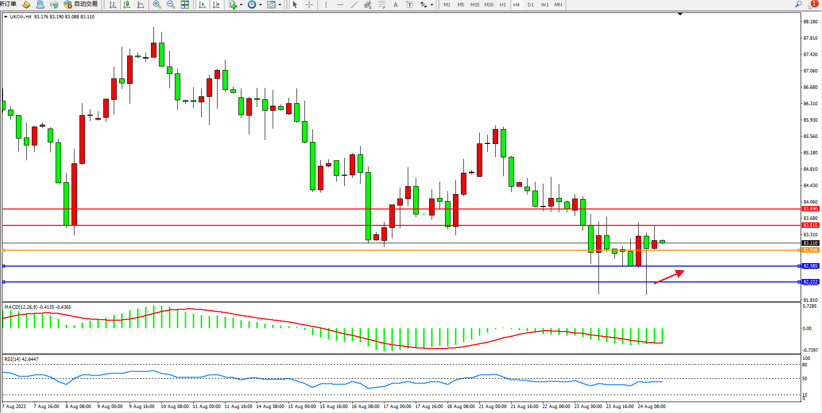 交易策略:82.948上方看涨,目标83.515 83.890