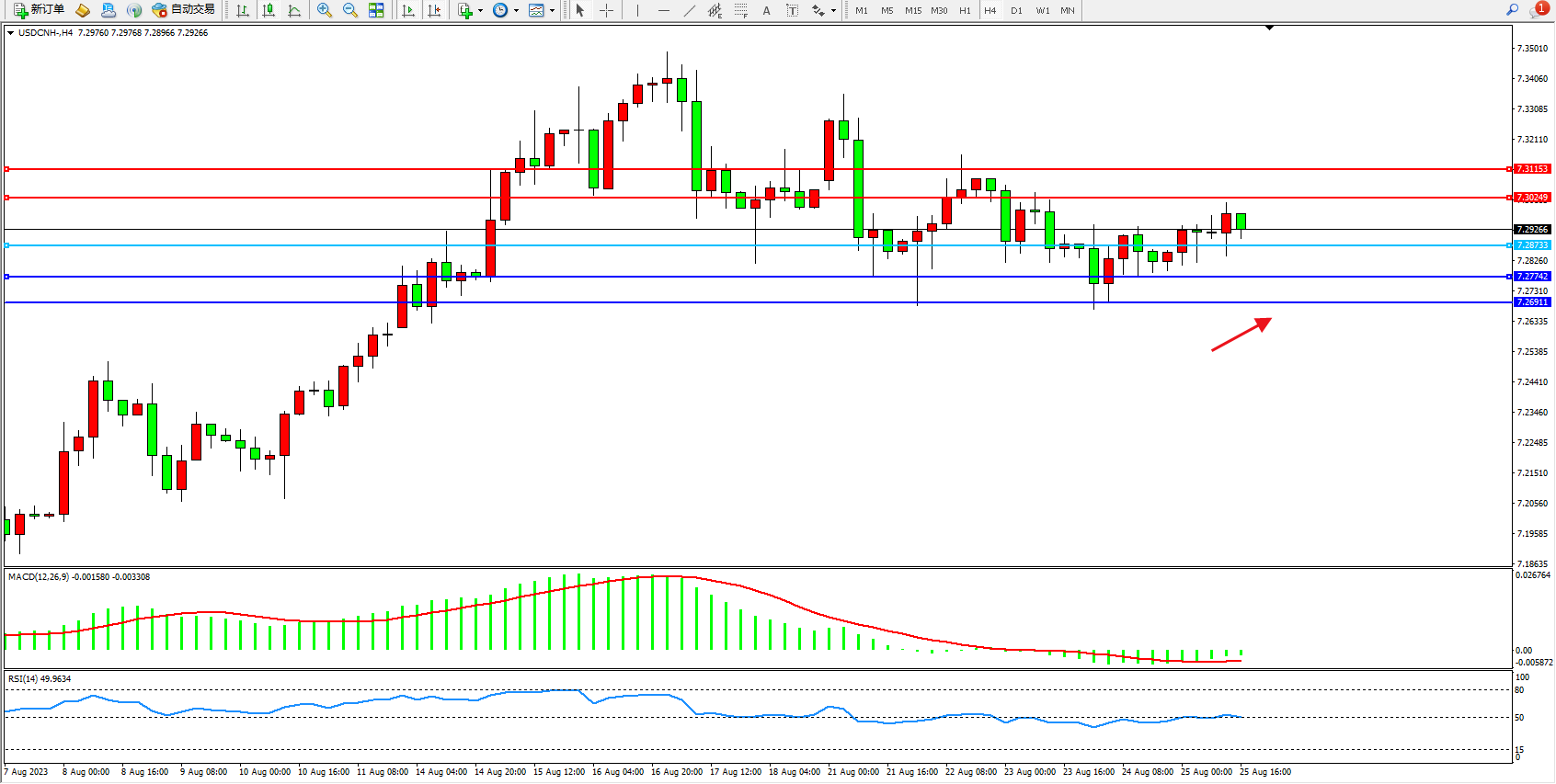 备选策略:7.28733下方看跌,目标7.27742 7.26911