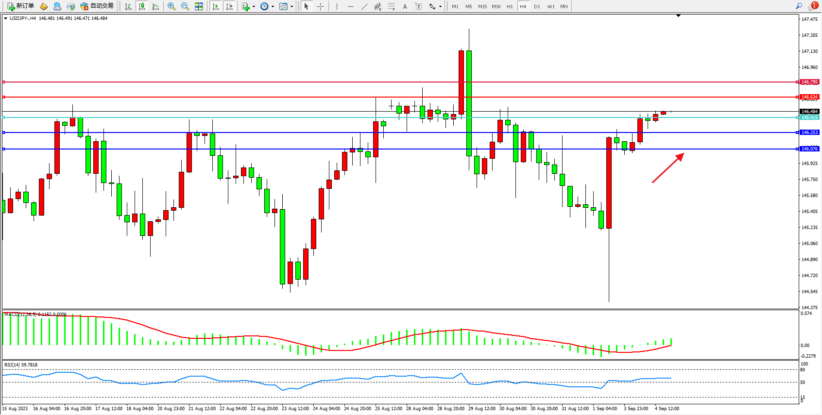 交易策略:146.415上方看涨,目标146.634 146.795