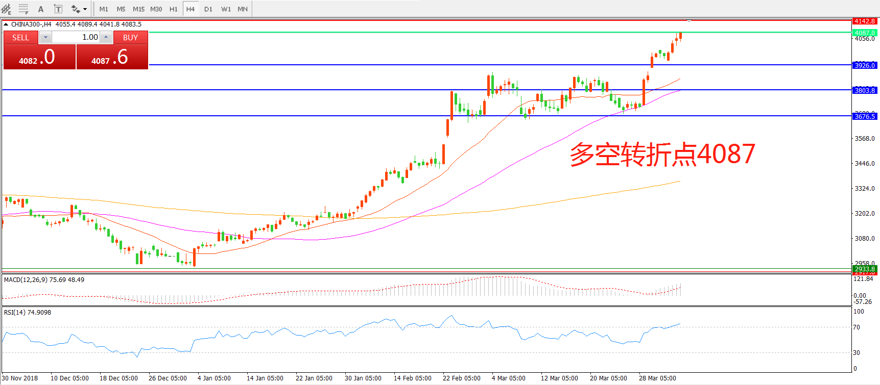 多空转折点:4087.00
