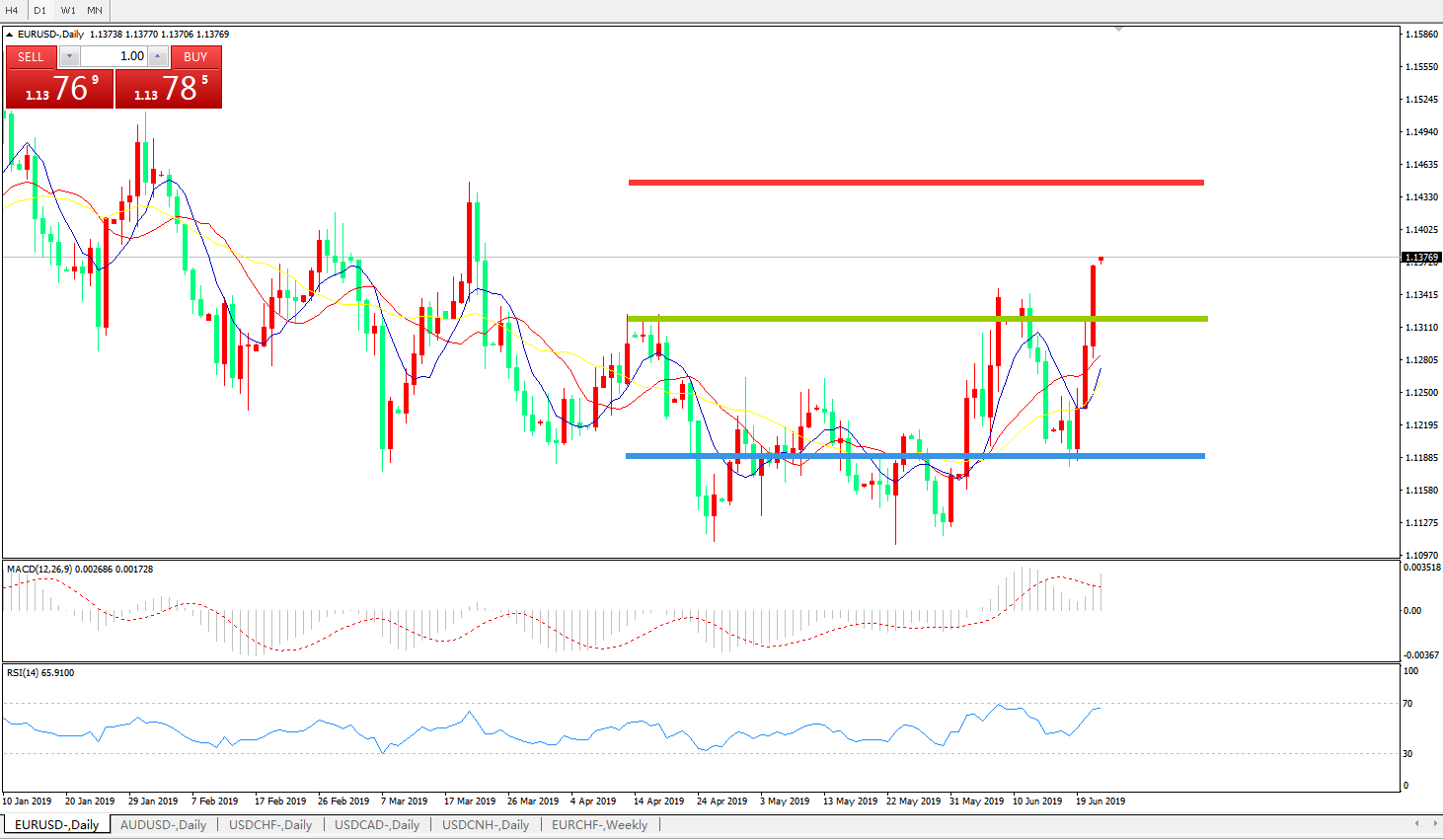 周五(621)纽市盘中,美元大幅走低,美元指数创322日以来新低至96.20,自美联储周三暗示可能在今年晚些时候降息以来美元连续受挫,日内公布的制造业数据不及预期也打压了美元;欧元兑美元涨幅一度扩大到0.68%,刷新近三个月来高点至1.1370;美元走软带动了欧元,法国德国企业活动数据强于预期,也提振欧元。