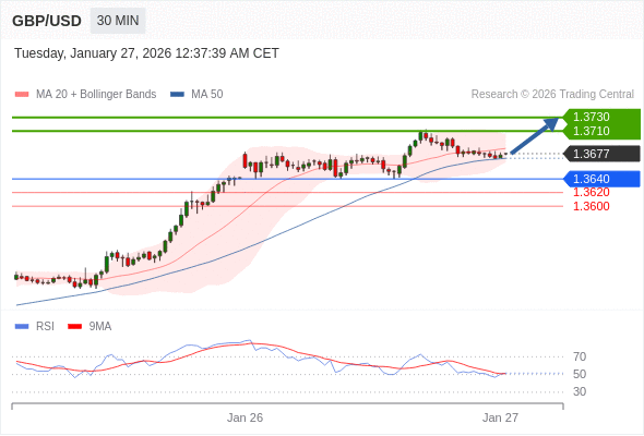 在 1.3640 之上,看涨,目标价位为 1.3710 ,然后为 1.3730 。
