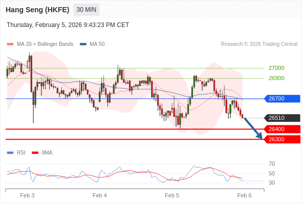 在 26700 之下,看跌,目标价位为 26400 ,然后为 26300 。