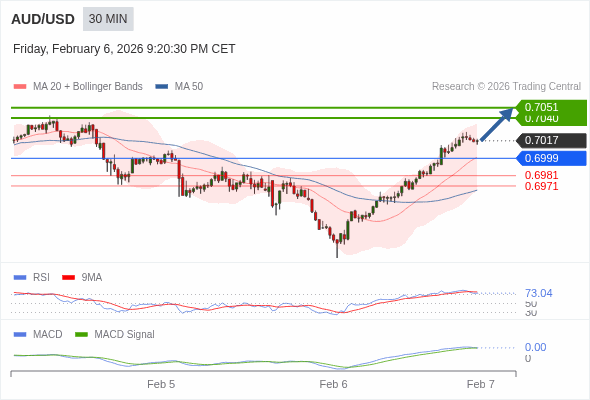 替代方案: 在0.6999以下,期待0.6981和0.6971。