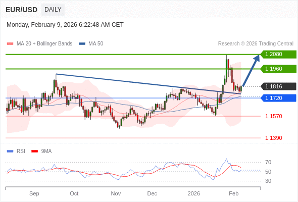 在 1.1720 之上,看涨,目标价位为 1.1960 ,然后为 1.2080 。