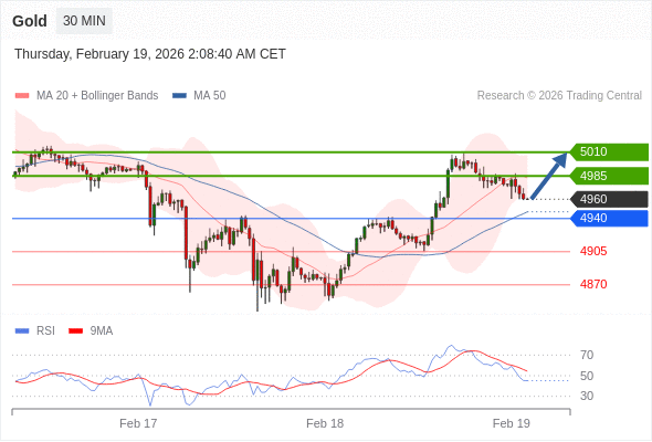 在 4940 之上,看涨,目标价位为 4985 ,然后为 5010 。