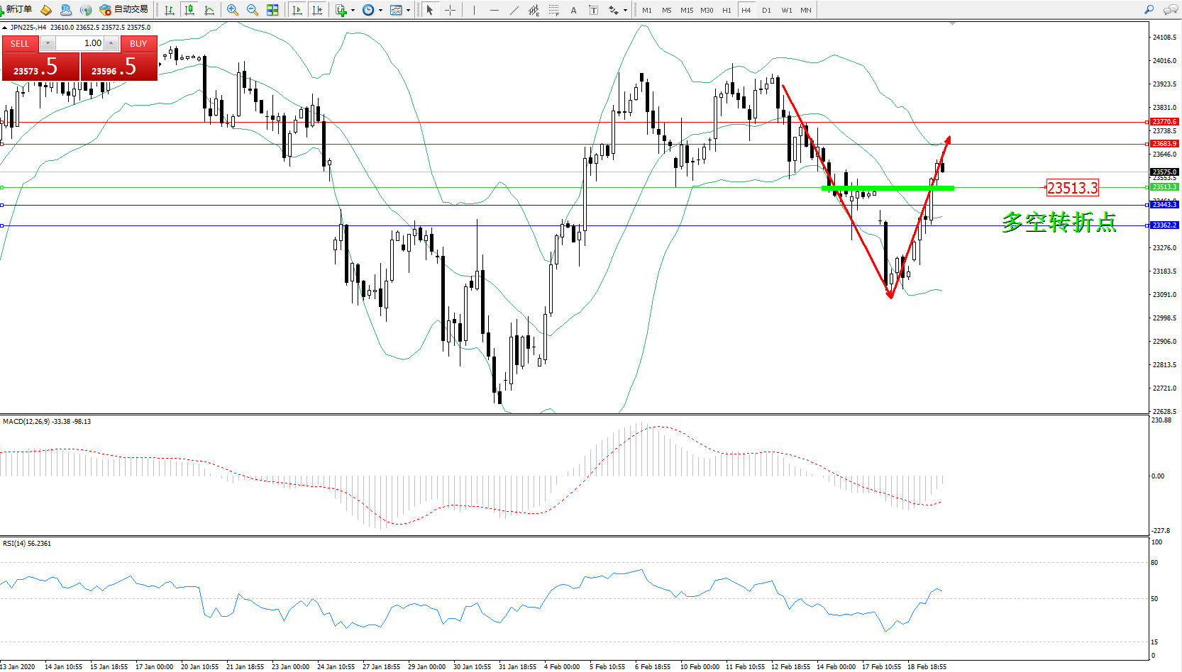 日经225指数2月19日(周三)收盘上涨203.20点,涨幅0.88%,报23397.00点。日本政府将在今日公布2月份报告中维持其关于经济处于逐步复苏阶段的观点。报告将指出就业和收入稳定,公共项目支撑经济。日本将关注新冠疫情对国内和全球经济的影响;由于影响仍然未知,2月份报告不会对此反映。10月份上调消费税和超级台风令经济活动显著承压,导致消费支出、企业投资和生产供应链降温,最新GDP萎缩数字加剧了日本经济可能滑入衰退的担忧。由于公共卫生事件以及日本制造业活动,促使一些经济学家预测衰退可能持续两个季度。