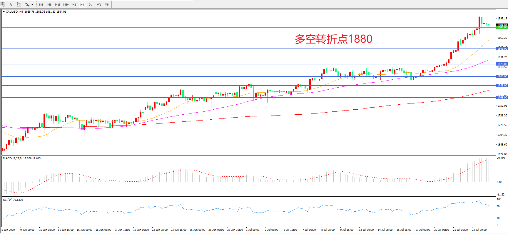 多空转折点:1880.00