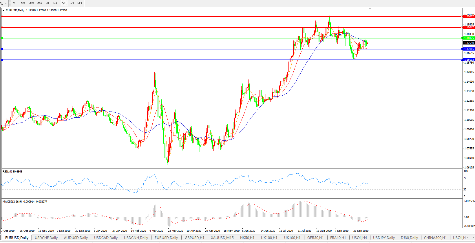 欧元兑美元EURUSD   日线图: