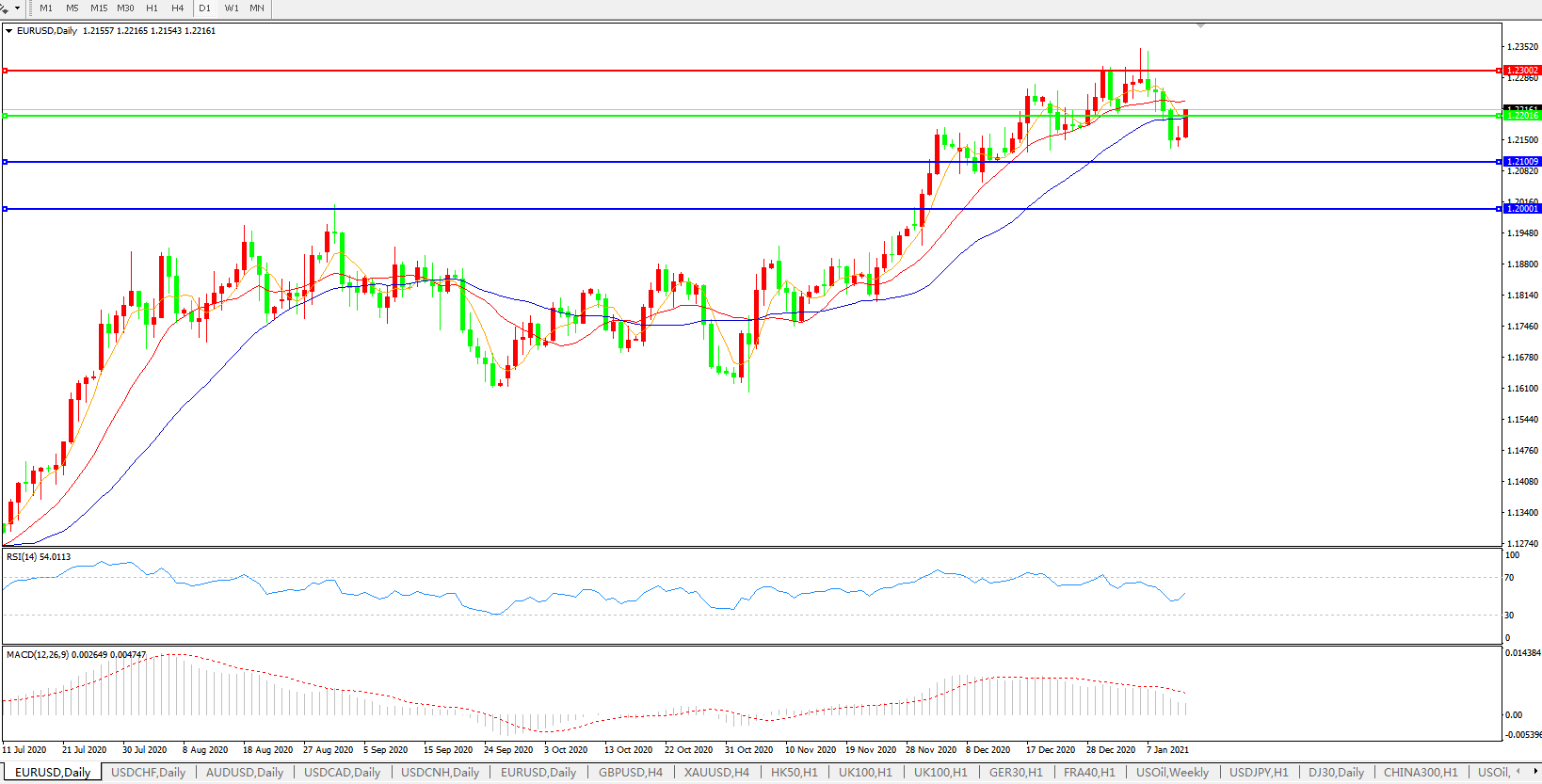 欧元兑美元EURUSD   日线图:
