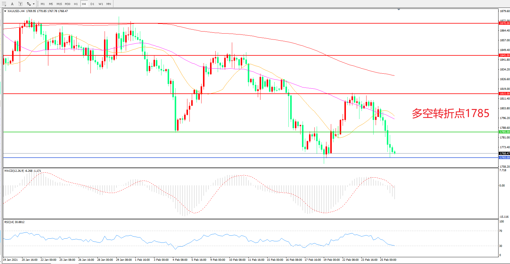 多空转折点:1785.00