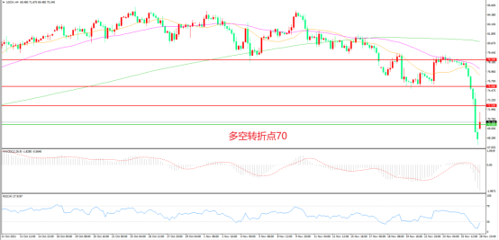 交易策略: 在70.00之下看跌,目标67.50 65.00