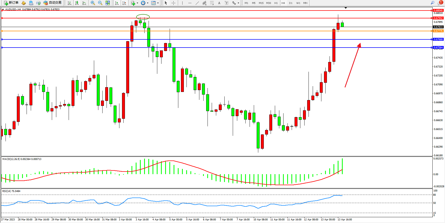 支撑位:0.67668 0.67564