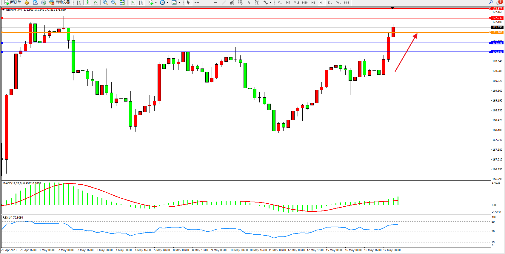交易策略:171.706下方看跌,目标171.321  170.983