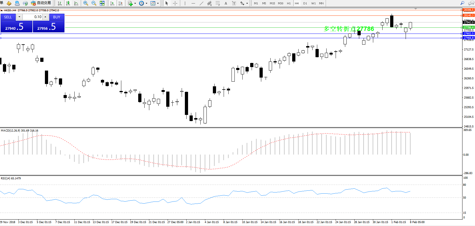 恒指HK50 ——4小时K线图显示: